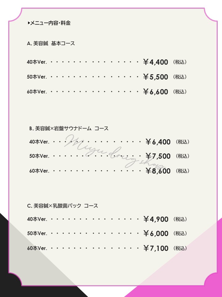 当店ではお客様のご予算やご希望される効果に合わせて40・50・60本コースを設けております。まずはお気軽にご相談下さい。